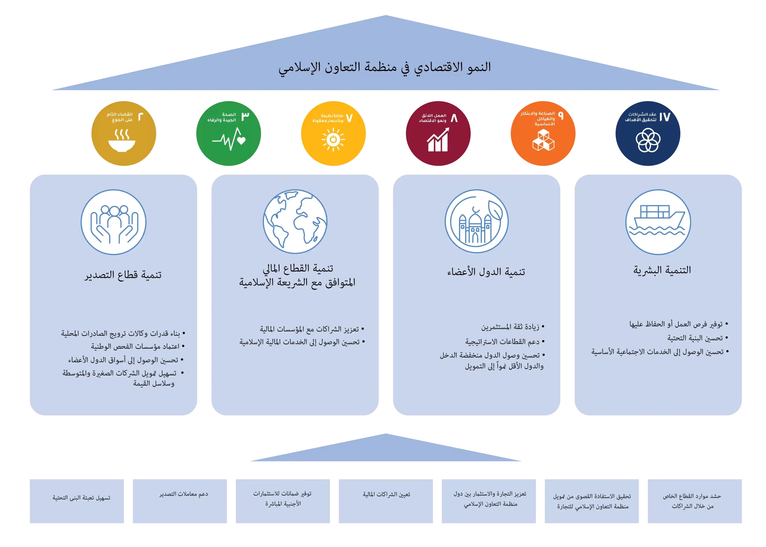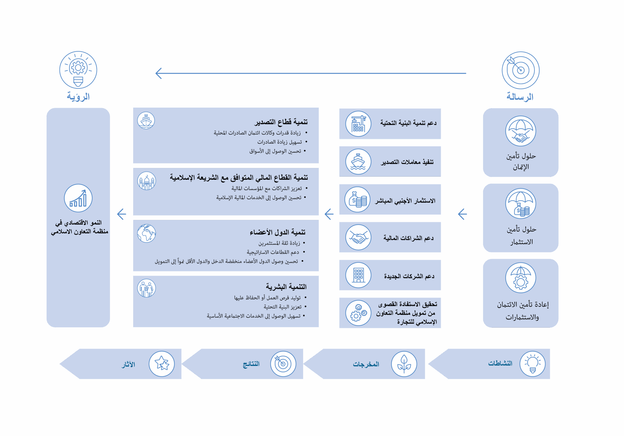 وضعت المؤسسة “نظرية التغيير” التي تمثل نموذجًا استراتيجيًا محكمًا يوضح بدقة كيف تسهم عملياتنا المتنوعة في تحقيق نتائج تنموية على المدى البعيد ودفع عجلة النمو الاقتصادي المستدام في دولنا الأعضاء. وتشكل هذه النظرية الأساس الذي يقوم عليه إطار فاعلية التنمية لدى المؤسسة وتُستخدَم كمرجع رئيسي يوجِّه جهودنا في تصميم جميع الأنشطة وتنفيذها وتقييمها.